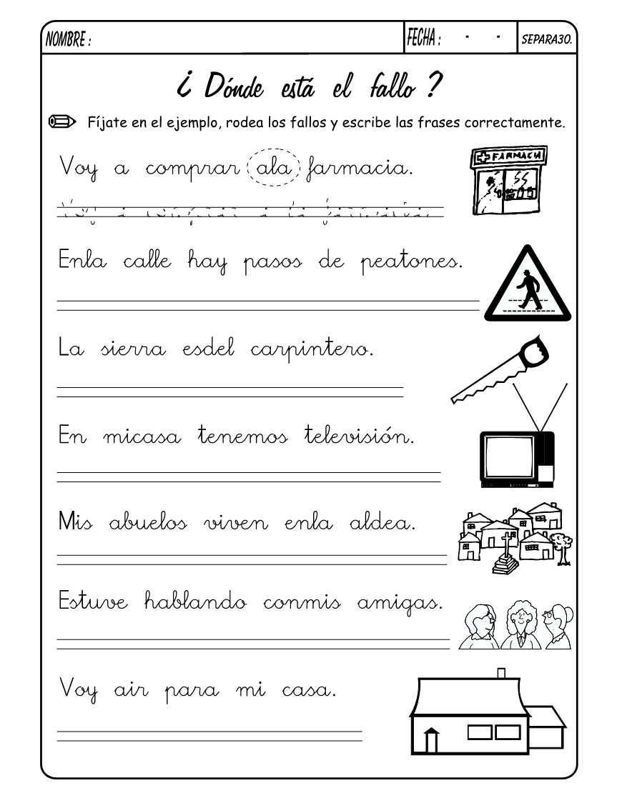SEPARAR PALABRAS DENTRO DE UNA FRASE, FICHAS IMPRIMIBLES :