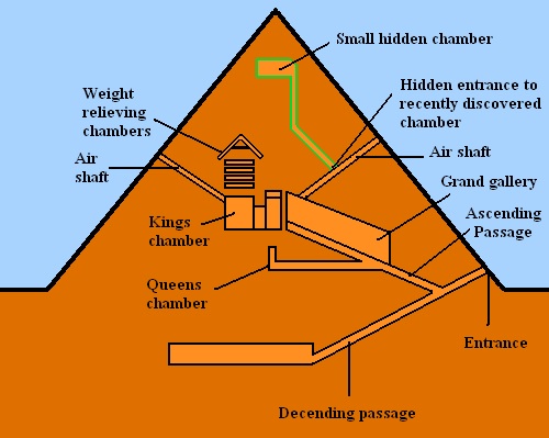 Poziția încăperii secrete, descoperită în Piramida lui Keops