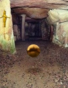 Apoi sonda și-a continuat explorarea, făcându-și drum prin a doua deschidere, în camera principală. Luminița emisă de fibra optică a scanat timp de mai multe încăperea întunecată, ce părea a fi goală. Dar încăperea era mult prea mare pentru micul fascicul de lumină, așa că s-a decis trimiterea unui al doilea fascicul, mai eficient, pentru a mări zona de vizibilitate a camerei video. Odată făcut și acest pas, s-a putut determina că încăperea era mult mai spațioasă decât prima. Atunci când sonda video s-a îndreptat direct spre mijlocul camerei, o imagine și mai șocantă li s-a arătat oamenilor de știință: chiar în mijlocul încăperii de piatră se afla o sferă aurie, cu un diametru de cca 30 de centimetri, plutind în aer cam la 40 de centimetri de sol.