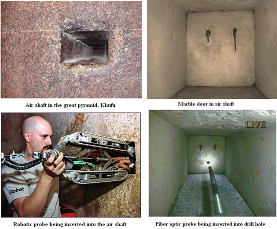 În 1993, o sondă robot a fost direcționată printr-o gură de aerisire. După ce a parcurs un traseu întortocheat, cu multe cotituri, aceasta s-a oprit în fața unei uși de marmură. Ce se afla dincolo de această ușă a rămas un mister până luna trecută, când oamenii de știință au primit aprobarea să continue explorarea prin forarea unei găuri de mică dimensiune, atât cât să intre prin ea fibra optică a sondei.