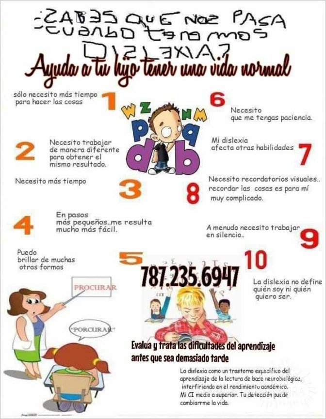 Pero el problema de un Disléxico y disgrafico no es solo en lectura y escritura de palabras si no en creación de oraciones. Después de parafos y en final textos.